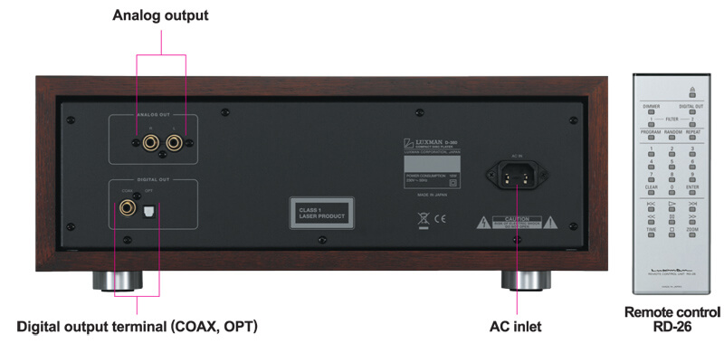 Đầu đọc CD Luxman D-380 gây ấn tượng bằng sự đơn giản, chất retro đậm đặc, thể hiện rõ qua sự kết hợp giữa mặt máy phay xước, nút điều khiển kiểu xưa và nhất là phần vỏ gỗ chassis được chế tác thủ công bằng gỗ hồng mộc. Nhà sản xuất còn cố tình giữ nguyên độ thô mộc với nhiều đường vân gỗ sâu tự nhiên. Luxman D-380 còn sở hữu điểm nhấn cực thu hút đó là cửa sổ kính nhỏ ở mặt trước, đủ để "khoe" bóng đèn điện tử bên trong.