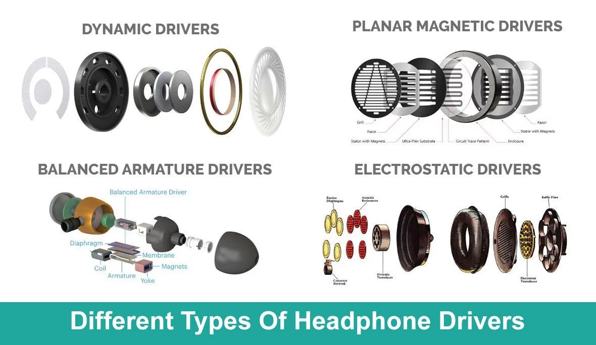 Như đã đề cập trước đó, loại driver được sử dụng trong tai nghe ảnh hưởng rất lớn đến chất lượng âm thanh. Dưới đây là các loại driver khác nhau thường được sử dụng trong earphone và headphone.