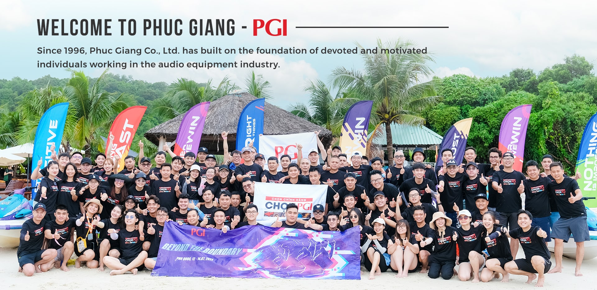 Khởi đầu từ những con người đam mê và nhiệt huyết trong lĩnh vực thiết bị âm thanh, Công ty TNHH Phúc Giang đặt nền móng cho những bước phát triển của mình từ những năm 1996. PGI với nhiều năm kinh nghiệm làm việc và hợp tác với những tập đoàn âm thanh uy tín trên thế giới như HARMAN, IAG với các thương hiệu nổi tiếng như: JBL, Harman/Kardon, AKG, SoundCraft, Wharferdale Pro, AudioFrog, LUXMAN, TEAC… Phúc Giang đã khẳng định uy tín trong các lĩnh vực hoạt động: phân phối thiết bị âm thanh chính hãng, tư vấn, thi công lắp đặt các giải pháp âm thanh gia đình, âm thanh sân khấu, âm thanh ô tô, âm thanh dự án cà phê, nhà hàng, Karaoke,...