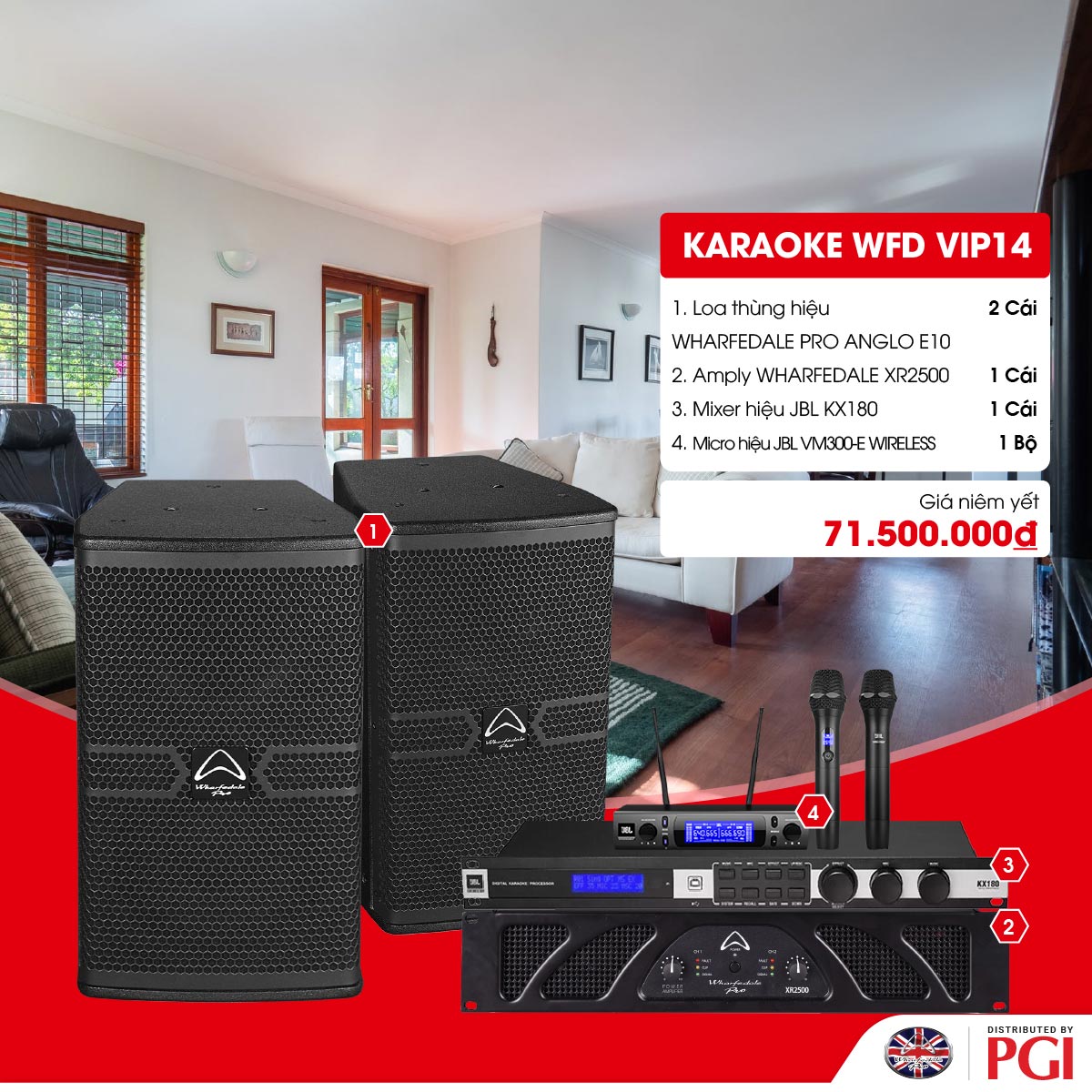 Combo dàn Karaoke gia đình Loa Wharfedale Pro Anglo E10 + WFD XR2500 + JBL KX180 + JBL VM300