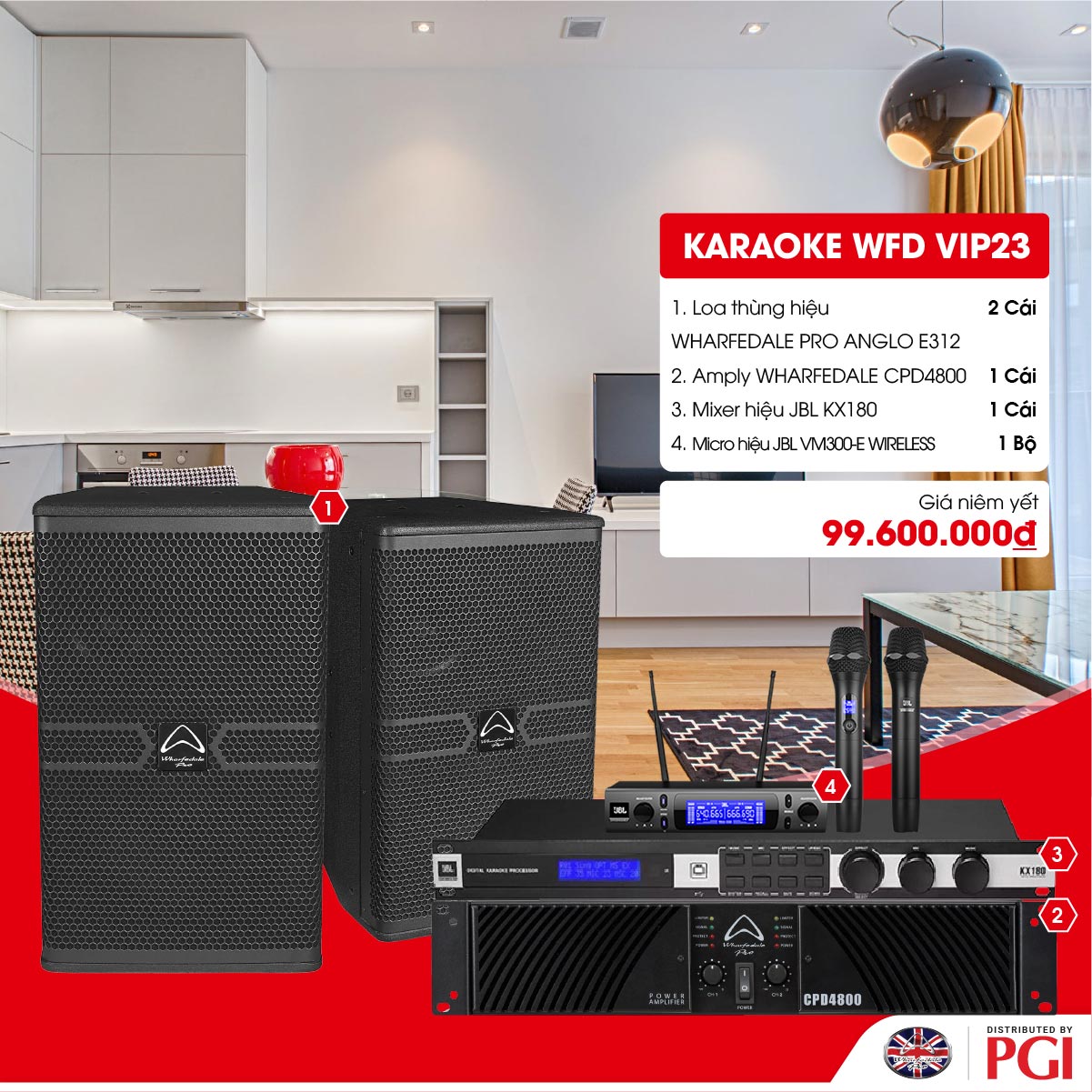 Combo dàn Karaoke gia đình Loa Wharfedale Pro Anglo 312 + WFD CPD4800 + JBL KX180 + JBL VM300