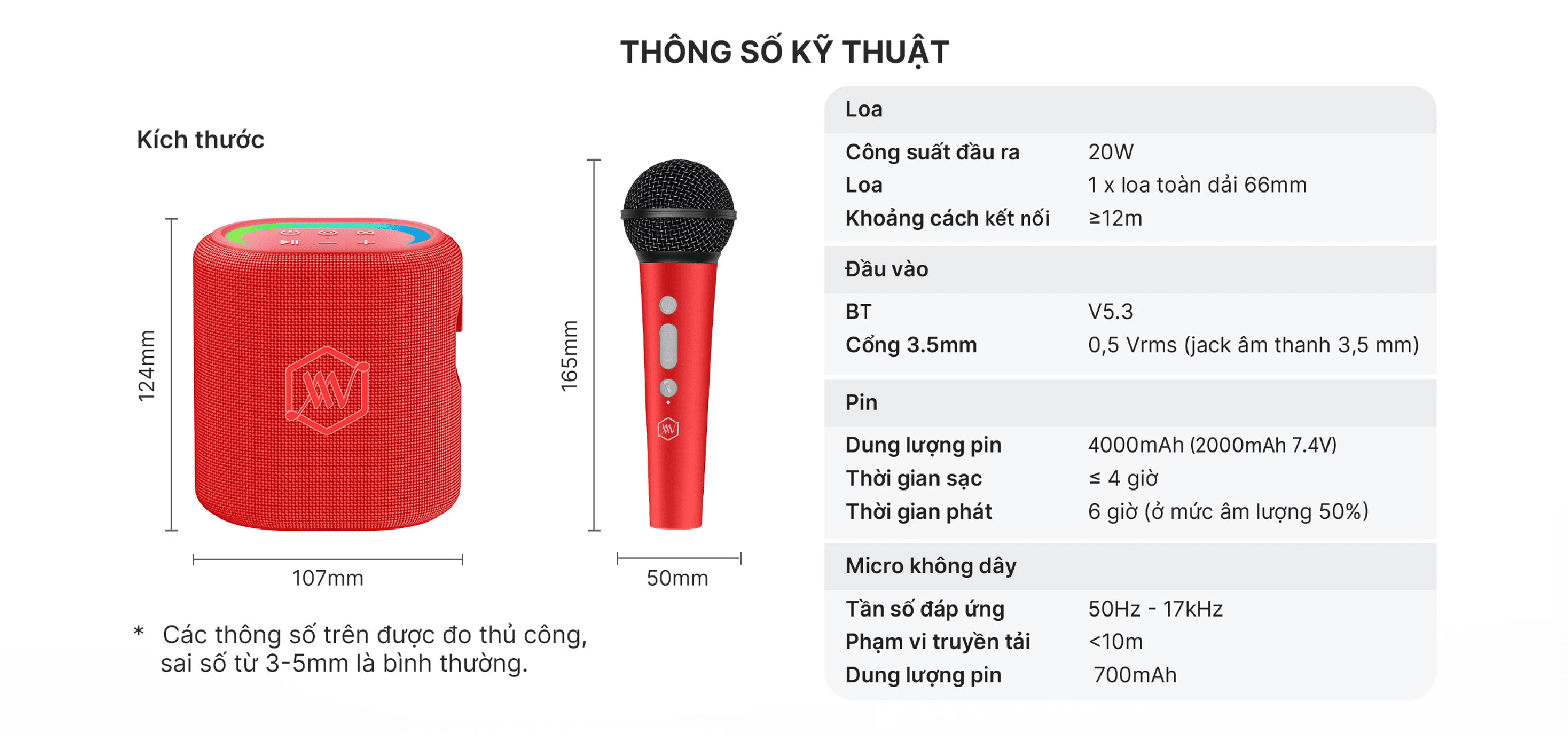Với kích thước chỉ 107.2mm x 77mm x 124.5mm và trọng lượng chỉ 580g, AW-SONIK+ sở hữu thiết kế nhỏ gọn, giúp bạn dễ dàng mang theo bất cứ đâu. Dù là trong ba lô hay túi xách, loa vẫn đảm bảo tính di động cao mà không chiếm nhiều không gian