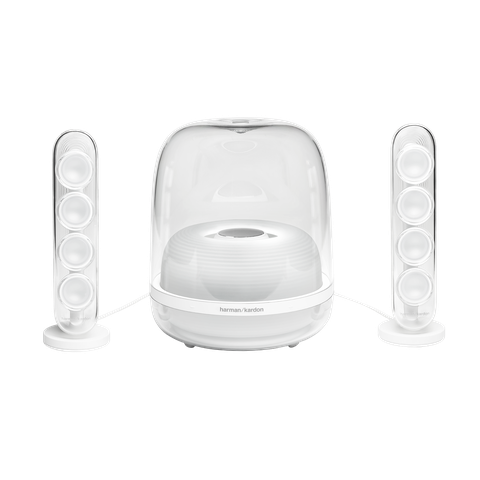 Loa Bluetooth Harman Kardon SoundSticks 4 Trắng sở hữu subwoofer hình vòm với bề mặt trong suốt ấn tượng. Bên trong được gia công những đường gợn sóng vừa mang tính thẩm mỹ, vừa có tác dụng khử nhiễu, mang lại chất âm trong trẻo hơn.