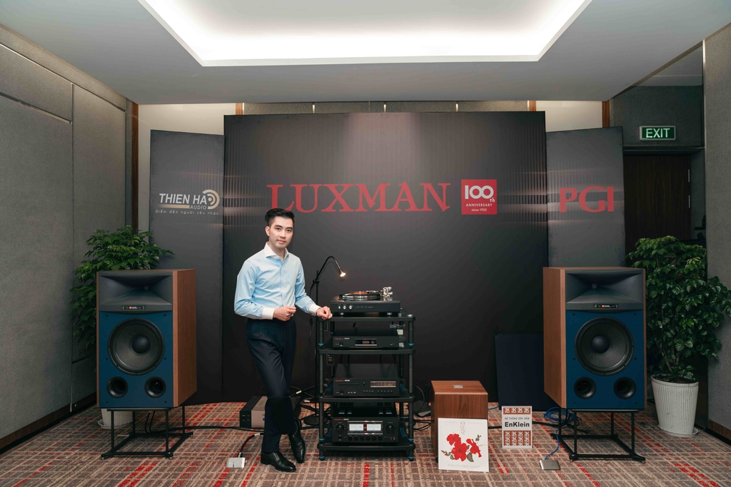 Ngay từ ngày đầu tiên, khu vực trình diễn LUXMAN do PGI phối hợp cùng đối tác Thiên Hà Audio đã trở thành tâm điểm chú ý tại AV Show 2025. Bộ sản phẩm Black Edition Centennial - giới hạn toàn cầu chỉ 100 bộ và duy nhất một bộ có mặt tại Việt Nam - không chỉ gây ấn tượng bởi sự hiếm có, mà còn bởi ý nghĩa di sản trăm năm mà nó đại diện.