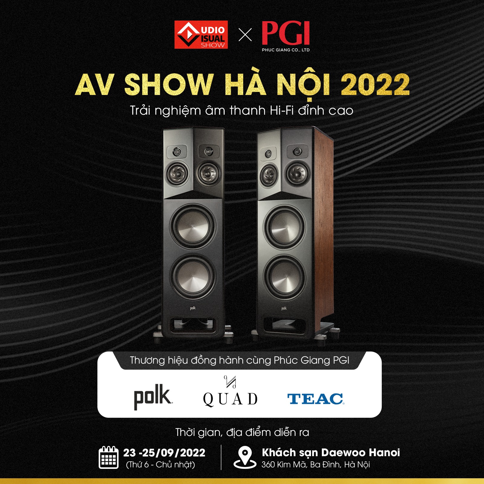 AVSHOW- Một trong những triển lãm của ngành âm thanh - nghe nhìn lớn nhất tại Việt Nam đã trở lại ngoạn mục tại Hà Nội với hàng loạt siêu phẩm Audio đến từ các thương hiệu hàng đầu trên thế giới. Đến với AV Show là đến với thế giới âm thanh của sự trung thực, tinh tế và sang trọng. Diễn ra từ ngày 23 đến 25/09/2022, Phúc Giang PGI sẽ đồng hành cùng sự kiện với các sản phẩm âm thanh Hi-Fi audio đến từ các thương hiệu Polk Audio, QUAD, TEAC.