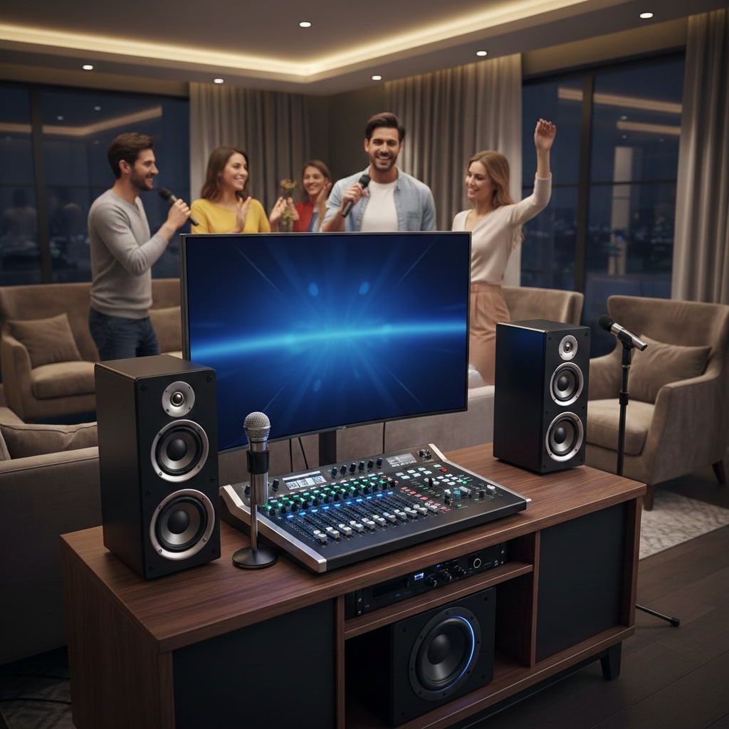 Với phòng khách hoặc không gian sinh hoạt chung, loa karaoke công suất vừa, âm thanh rõ và bass gọn là lựa chọn phù hợp. Không cần thiết phải chọn loa quá lớn.