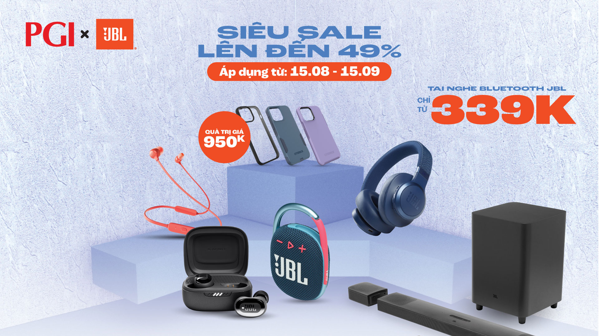 - Giảm 15% loa Bluetooth, Soundbar & 20% tai nghe thương hiệu JBL & Harman Kardon từ ngày 15-28/08/2022